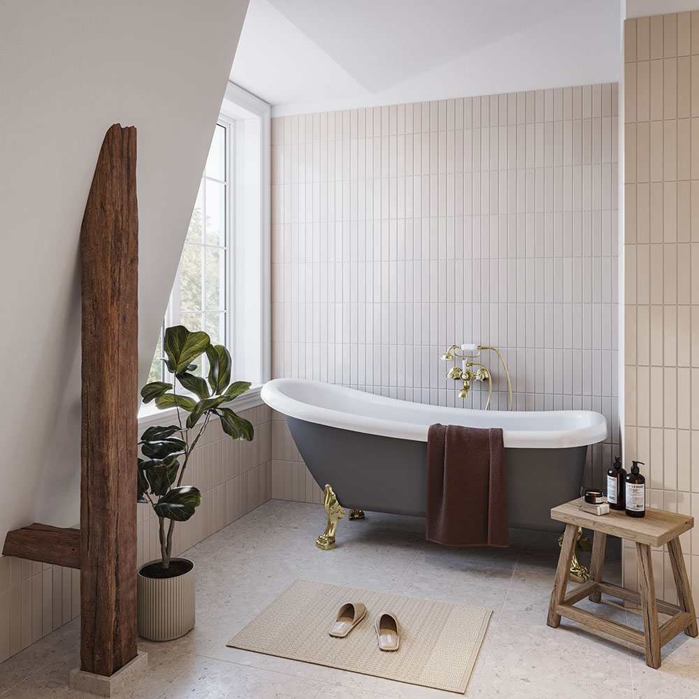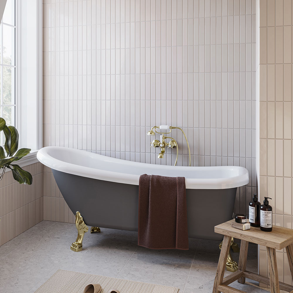 Badekar 1530 Sofia Grå/Hvid Med Messing Løvefødder