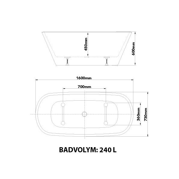 Badekar Westerbergs DOPP 1600 hvid er et badekar i lige design med en markeret skrå kant hele vejen rundt. Den dobbeltsidede konstruktion og formen på karret gør, at du sidder godt og behageligt i karret på begge sider. Formen på badekarret gør det nemt at placere i enhver form for badeværelse, moderne så vel som klassisk. Krom bundventil og afløbssæt medfølger. Køb til