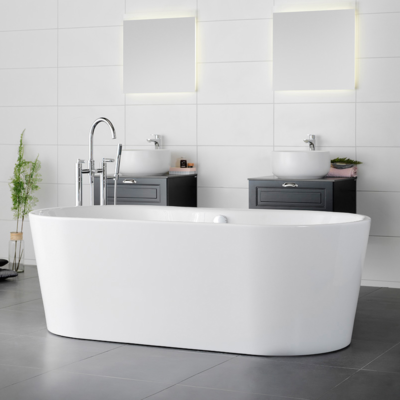 Et gedigent fritstående badekar med spændende møder mellem minimalistiske linjer og bølgende former – et rigtigt blikfang i dit badeværelse. Det er fremstillet af støbt sanitetsakryl – uden synlige samlinger og med dobbeltsidede vægge, som sikrer en god isolering, så vandet holder sig varmt i længere tid.
