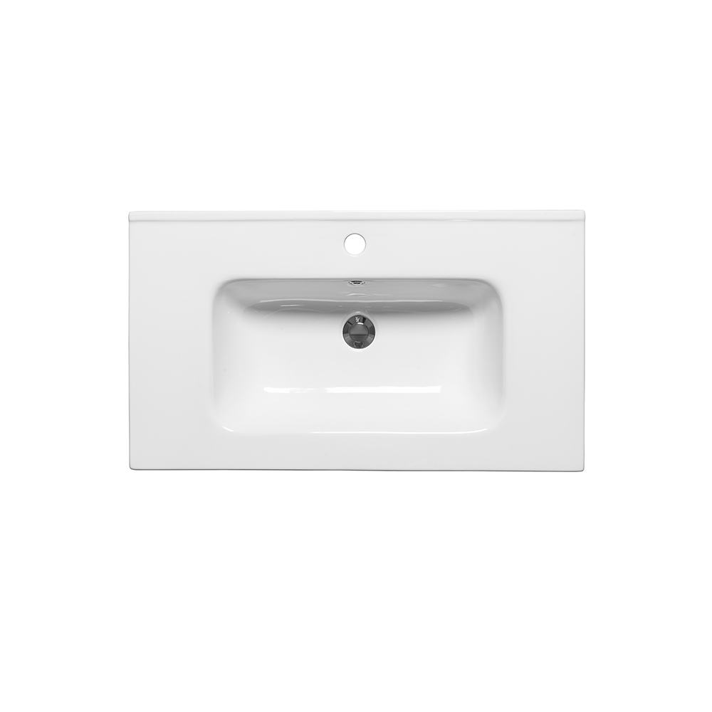 Tynd, rummelig håndvask i porcelæn med afsætningsplads i siderne.