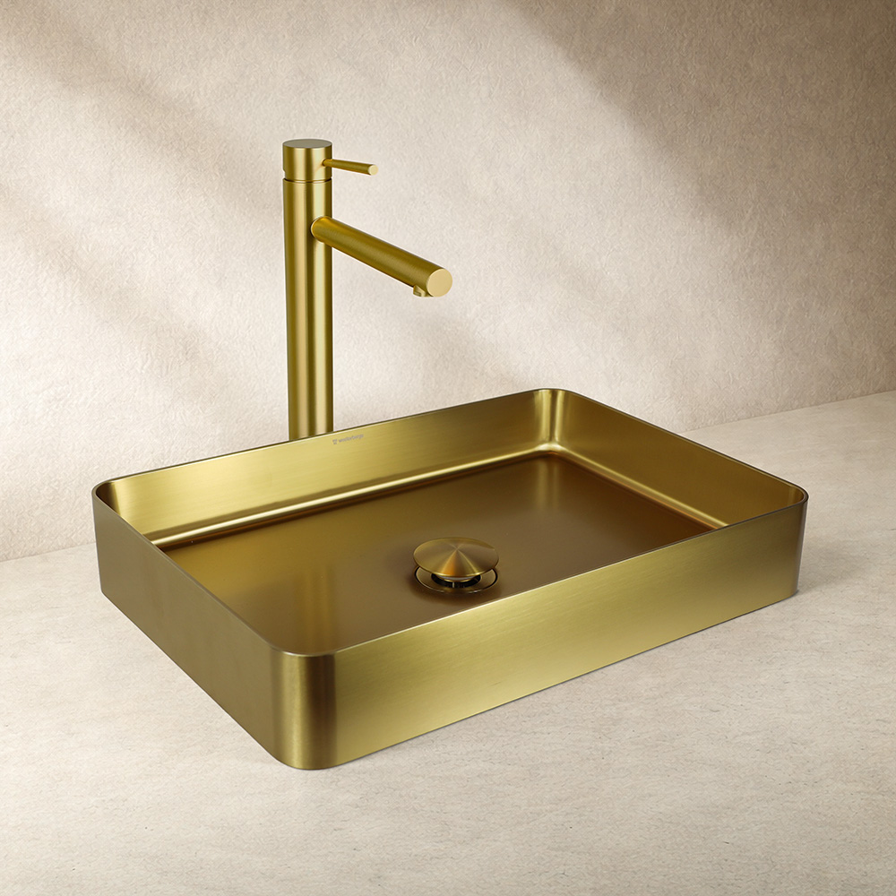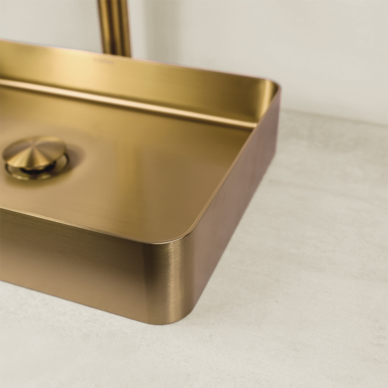 Fremstillet i højkvalitets børstet rustfrit stål, tilføjer vasken et moderne og markant udtryk til badeværelset. Den blødt børstede overflade bevarer sin smukke farve over tid takket være PVD-behandlingen, som samtidig øger modstandsdygtigheden mod ridser og slid.
