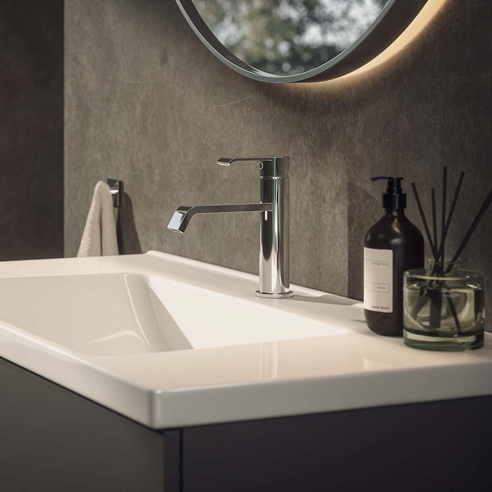 Loxia fås i flere farver, som giver badeværelset et eksklusivt præg. Supplér med bundventil og overløbsring i matchende farvere for et harmonisk og stilfuldt helhedsindtryk.
