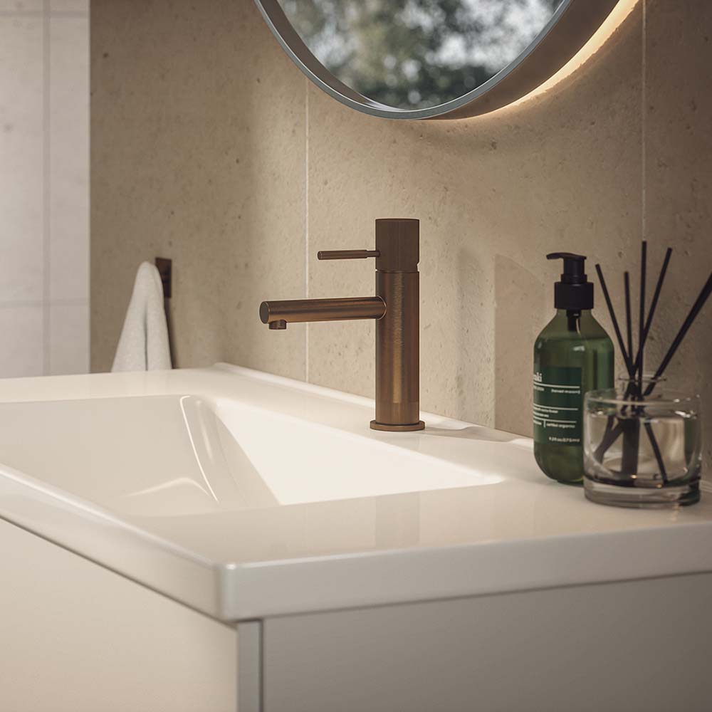 Westerbergs Zenit er et håndvaskbatteri med rillede, dekorative detaljer. Fås i flere farver. PVD-behandlet overflade for en holdbar finish. Køb en pop up-ventil og overløbsbeskyttelse i matchende farvere.