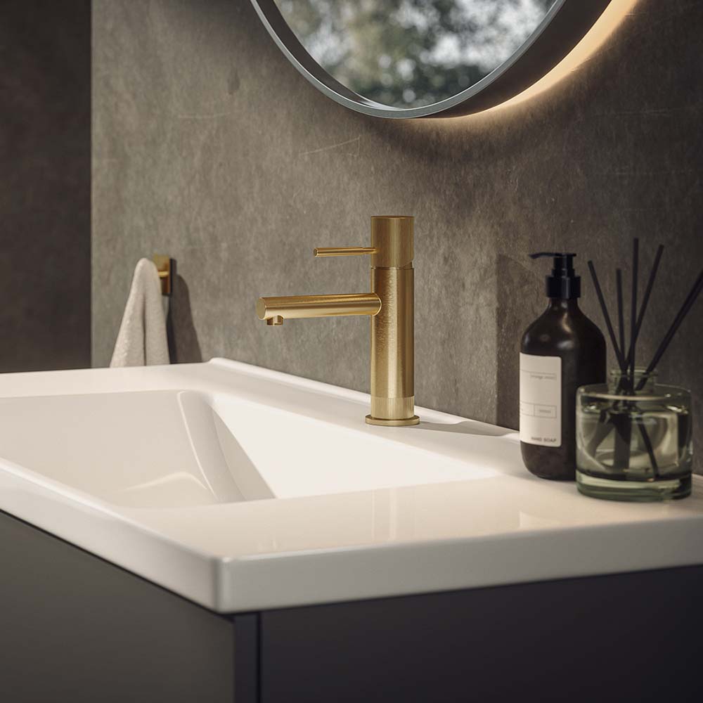 Westerbergs Zenit er et håndvaskbatteri med rillede, dekorative detaljer. Fås i flere farver. PVD-behandlet overflade for en holdbar finish. Køb en pop up-ventil og overløbsbeskyttelse i matchende farvere.