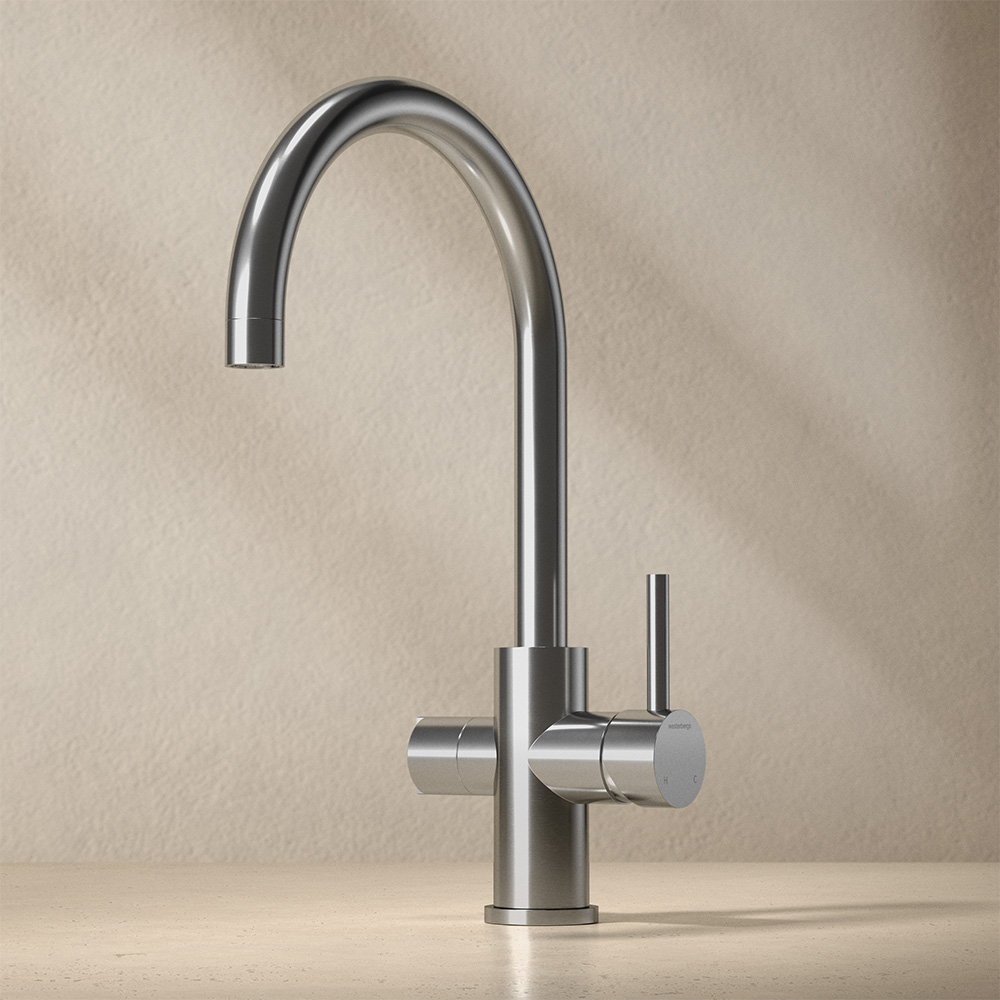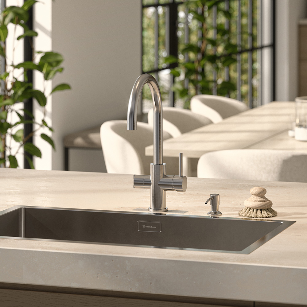 Westerbergs Ciconia er et stilfuldt køkkenarmatur med blødt afrundede former og en praktisk frakobling af opvaskemaskine, designet til at passe lige så godt i køkkenet som i bryggerset. Armaturet er fremstillet i rustfrit stål af høj kvalitet og har en svingbar tud, der gør arbejdet ved både køkken- og vaskebord mere smidigt.