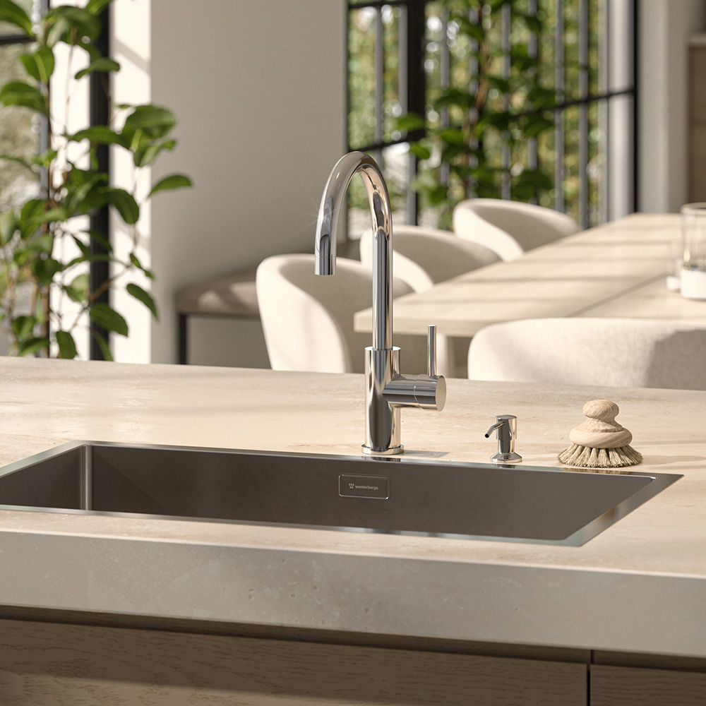 Westerbergs Ciconia er et stilfuldt køkkenarmatur med blødt afrundede former, designet til at passe lige godt i køkkenet, som i bryggerset. Armaturet er fremstillet i rustfrit stål af høj kvalitet og har en svingbar tud, der gør arbejdet ved både køkken- og vaskebord mere smidigt.