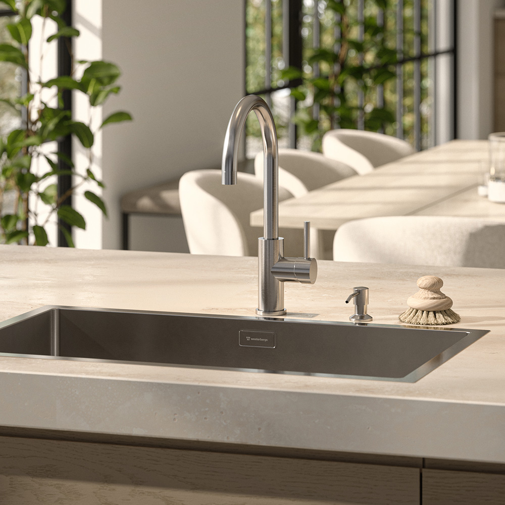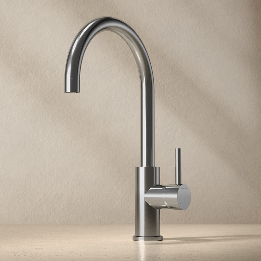 Westerbergs Ciconia er et stilfuldt køkkenarmatur med blødt afrundede former, designet til at passe lige godt i køkkenet, som i bryggerset. Armaturet er fremstillet i rustfrit stål af høj kvalitet og har en svingbar tud, der gør arbejdet ved både køkken- og vaskebord mere smidigt.