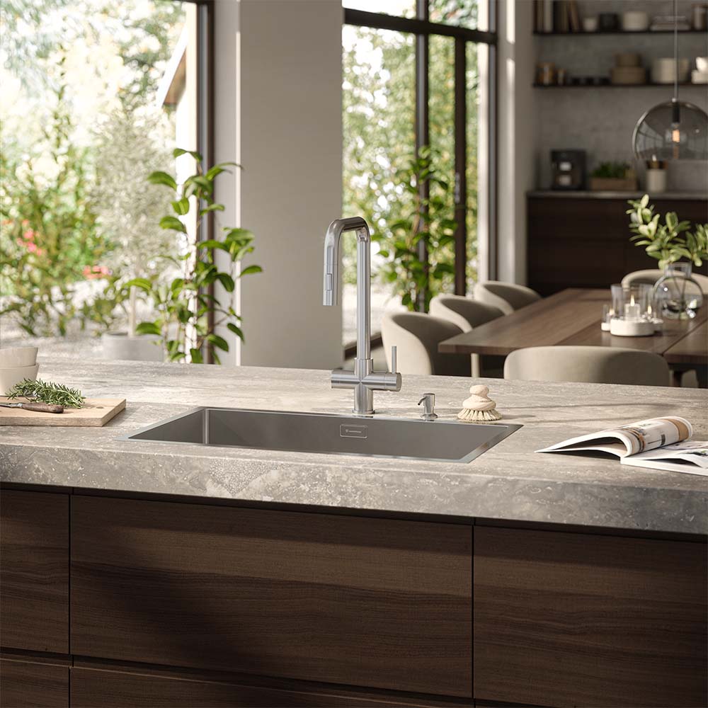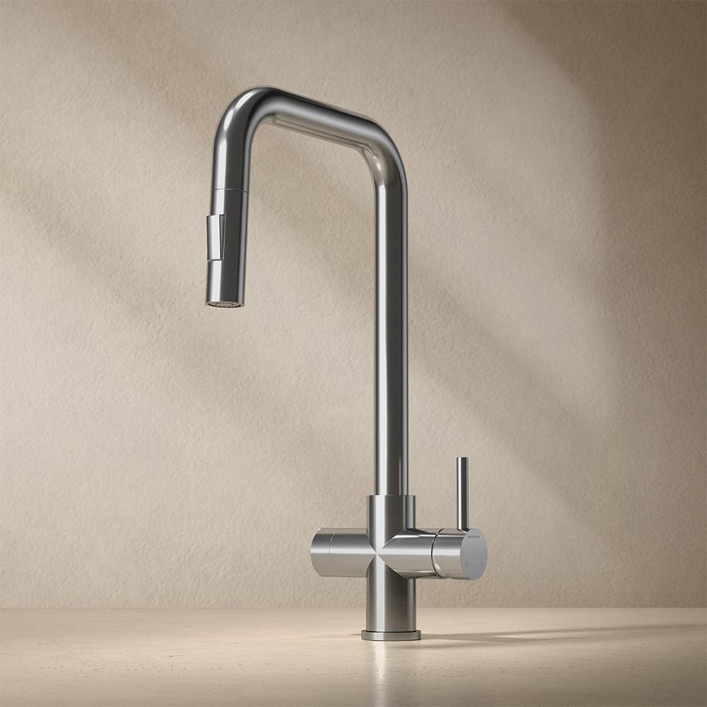 Westerbergs Strix XL er et elegant køkkenarmatur i rustfrit stål af høj kvalitet, udstyret med frakobling af opvaskemaskine. Køkkenarmaturet har en udtrækkelig udløbstud, som giver ekstra rækkevidde i køkkenet. Den lige form gør, at armaturet passer perfekt under overskabe eller foran et vindue, mens den svingbare udløbstud gør arbejdet ved køkken eller vaskebord lettere.