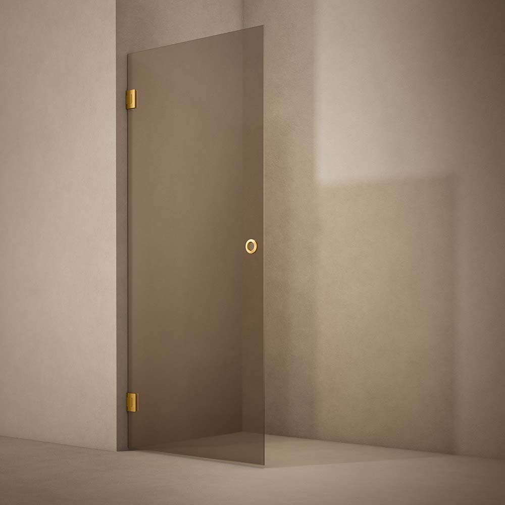 Brusedør Lynx Bronze Tonet Glass 90 Børstet Messing