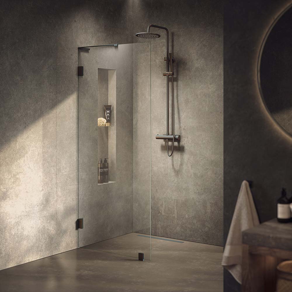Når designet holdes rent og minimalistisk, kommer det væsentlige i fokus – lyset, fornemmelsen af rummelighed og glassets elegance. Westerbergs Lynx brusevæg i klart glas er en tidløs bruseløsning med en eksklusiv premiumfølelse, hvor store, klare glasflader og slanke beslag giver badeværelset et åbent og luftigt udtryk.