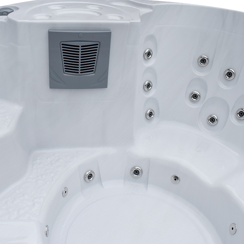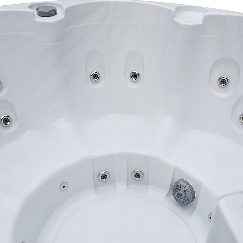Marstrand er, takket være sin runde form, nok det af vores udendørs spabad, der er lettest at finde plads til. Fem behagelige siddepladser og 29 massagejets giver dig en afslappende massage. Du bestemmer selv, om du vil have massagen til at køre i hele karret eller kun ved nogle pladser.